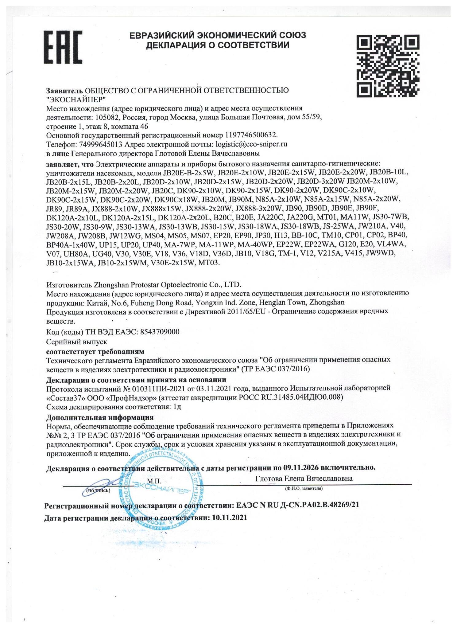 Купить уничтожитель комаров "Экоснайпер JB20B-2X15L2" в Междуреченске можно, оформив заказ в нашем онлайн-магазине. Экоснайпер JB20B-2X15L2: цена, отзывы, подробное описание.