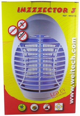 Уничтожитель комаров "Weitech WK0115" (INZZZEKTOR 3) использует ультрафиолетовое свечение для приманивания насекомых, а затем убивает их электрическими разрядами. Источником УФ света служат 12 светодиодов, поэтому устройство очень экономично в плане потребления энергии и не нуждается в расходниках. Эффективная площадь защиты составляет 20 кв. м.